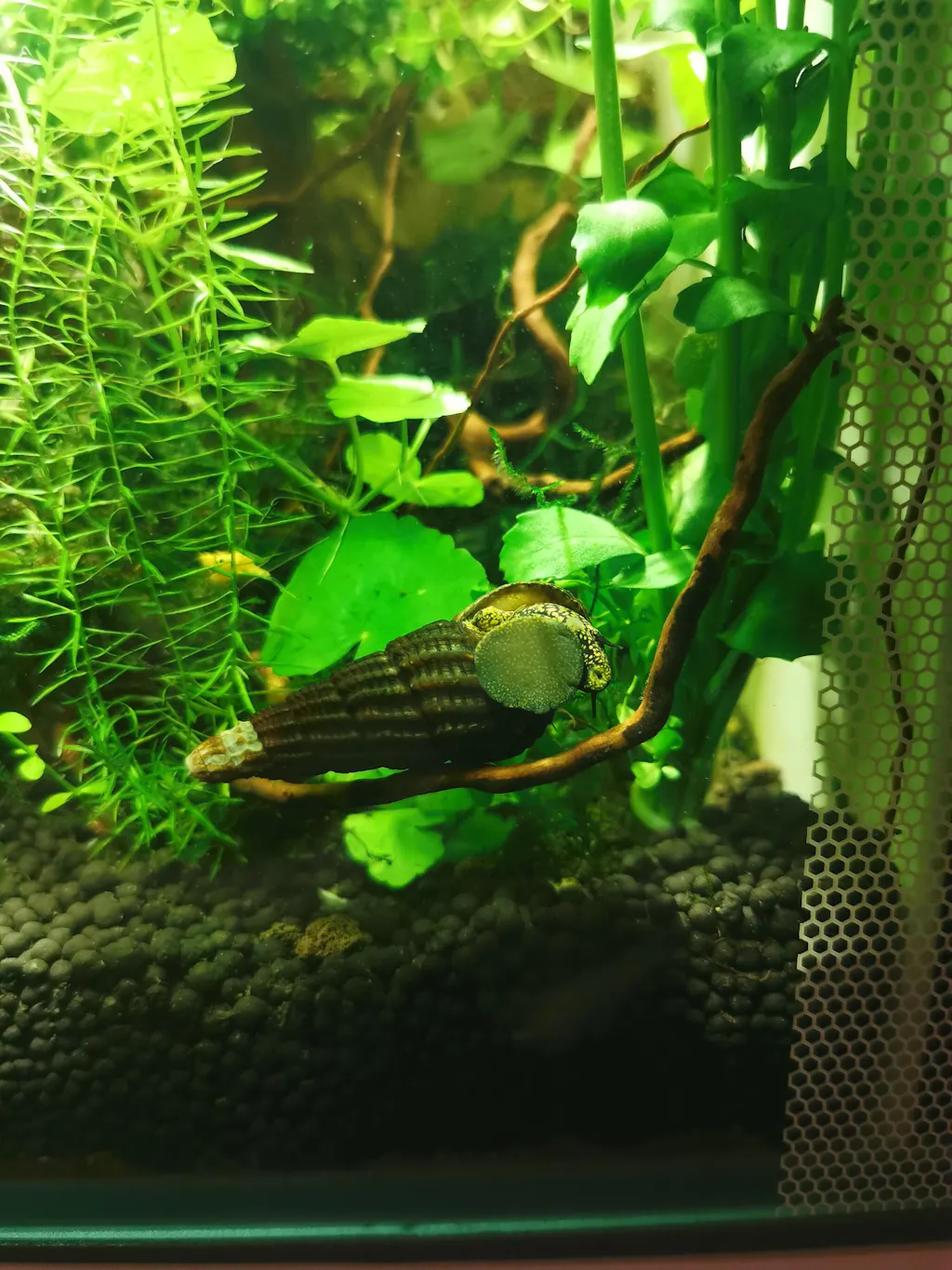 Melcul se va aventura în vârful acvariului și va ieși din apă din când în când.